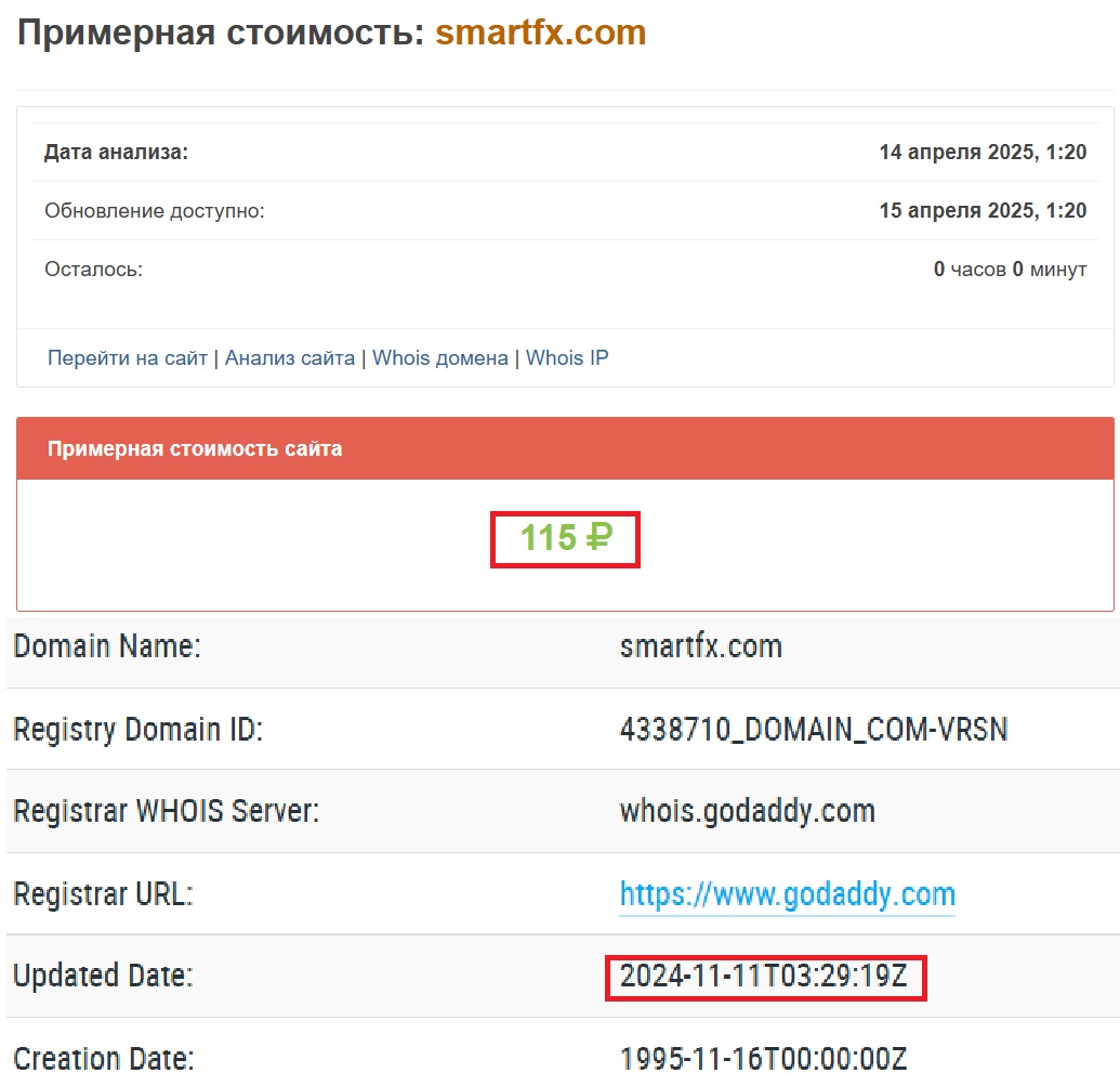 А теперь немного конкретики. Мы провели проверку через сторонние сервисы и выяснили, что домен был зарегистрирован 16 ноября 1995 года. Но, что интересно, активность на сайте началась только 11 ноября 2024 года. Всего ничего. Если бы перед нами была легальная компания с серьезными намерениями, срок существования ресурса хотя бы как-то намекал бы на стабильность. Но здесь — обычная схема: старый домен вытаскивают из пыли, присваивают новому проекту и запускают с новой легендой.