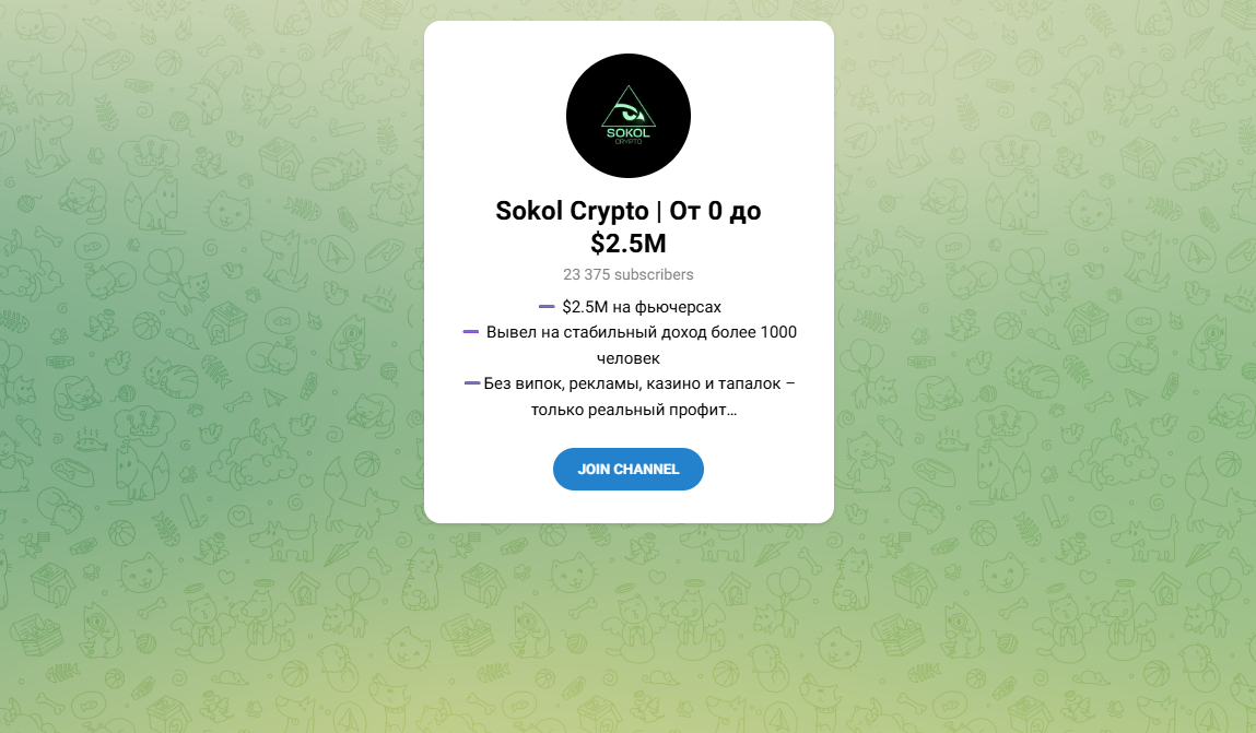 В современном мире криптовалют и цифровых активов постоянно появляются новые проекты с громкими обещаниями относительно быстрого и высокого дохода. Однако среди них нередко встречаются обыкновенные мошеннические схемы, которые лишь маскируются под легальные инвестиционные и образовательные пространства. В список таких лохотронов можно отнести телеграм-канал Sokol Crypto | От 0 до $2.5М. Автор данного сообщества, некий Роман Соколов, позиционирует себя как эксперта в области трейдинга и вложений в крипту. Также мужчина гарантирует клиентам многократное увеличение их депозитов за короткий период времени и профессиональное сопровождение сделок. Но несмотря на столь заманчивые предложения, принимать их мы не рекомендуем.