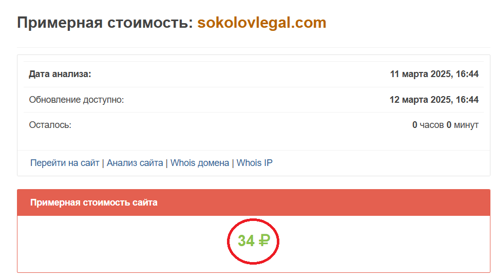 Начнем с анализа самого домена. Хоть его возраст и составляет 10 лет, на деле платформу выкупили в 2024. Или же иными словами — аферисты решили взять сайт «с историей», дабы вводить людей в заблуждение. Что касается дизайна, то он выглядит просто. Шаблон площадки уже встречался во многих других жульнических схемах. Примерная стоимость ресурса равняется и вовсе всего к 34 рублям, что считается низким результатом, как для якобы надежной организации.
