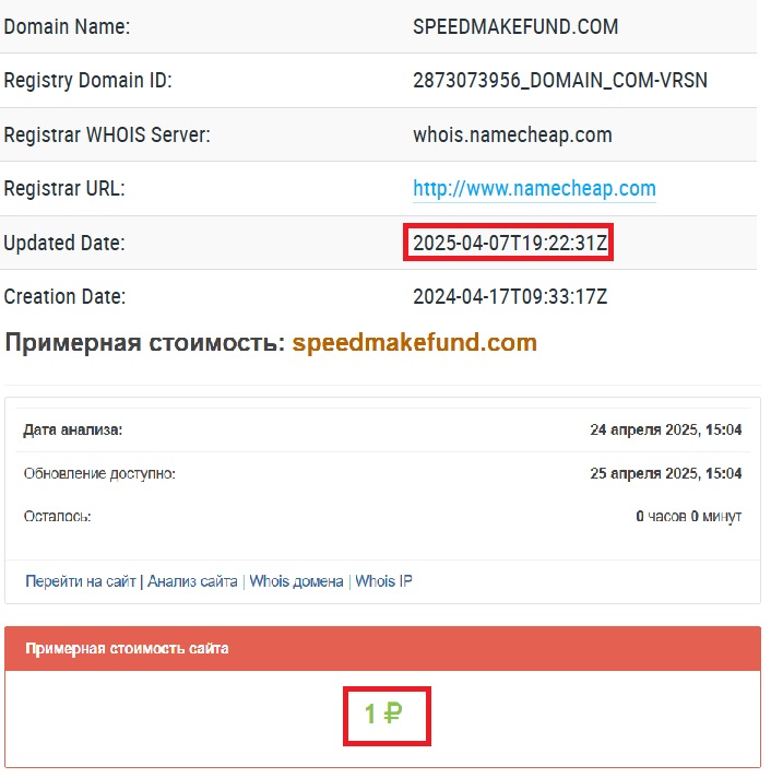 Смотрим дальше. SpeedMakeFund якобы имеет «многолетний опыт», но по факту сайт начал функционировать лишь 7 апреля 2025 года. То есть, еще и года нет, а уже рисуют легенду о «надежной компании с историей». Такое часто встречается, и каждый раз вызывает один и тот же вопрос: ну зачем врать так в лоб? Плюс еще один момент — стоимость ресурса. Один рубль. Да-да, буквально. Сложно поверить, что серьезный брокер, работающий с крупными суммами, будет располагаться на домене, купленном за символическую плату. А может, и не сложно. Особенно если вспомнить, что такие площадки создаются вовсе не для того, чтобы зарабатывать честно.