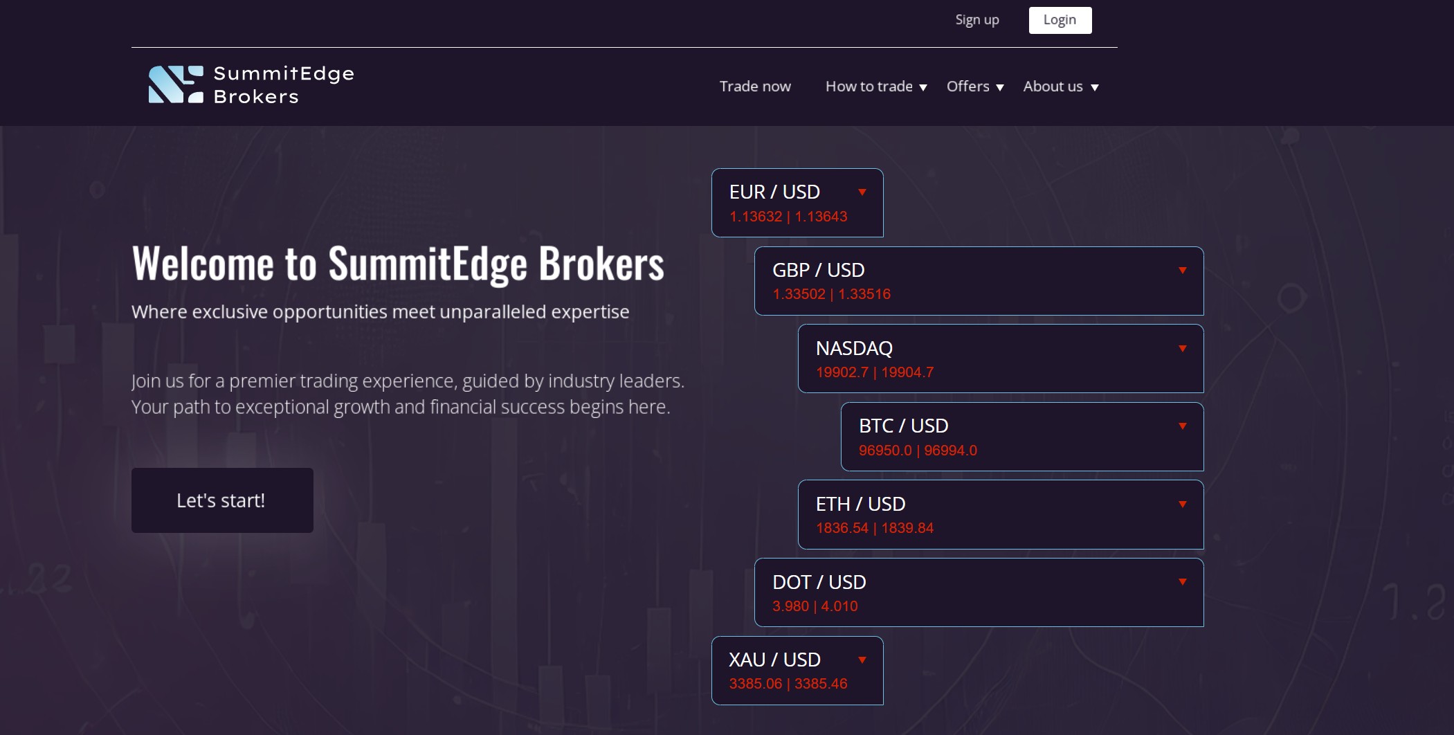 Иногда создается впечатление, будто аферисты просто работают посменно, без выходных и сна. Только один сайт успел с треском провалиться — тут же появляется следующий, еще громче, еще пафоснее, еще наглее. Знакомьтесь, на этот раз перед нами Summit Edge Brokers. Говорят, они на рынке уже долго, что за их плечами годы успешной практики, что их “инструменты” — это почти волшебная палочка для всех, кто хочет приумножить свои сбережения. Да только звучит это все знакомо, не находите?