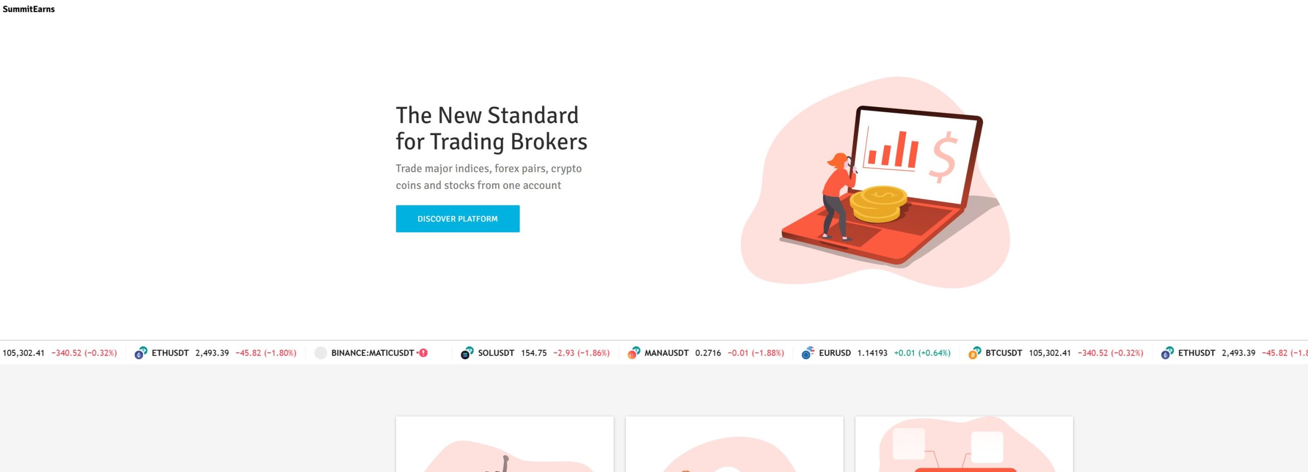 С виду, вроде бы, ничего пугающего. Адрес summitearns.com, интерфейс минималистичный, работает быстро. Но вот только с чего начинается знакомство с нормальной инвестиционной платформой? С доверия. А его тут, как бы сказать… совсем нет. Все слишком уж подозрительно. Сразу бросается в глаза дешевая подача. Такое ощущение, что сайт собрали наспех, буквально за пару дней. А дальше уже знакомая схема: замануха, яркие фразы, обещания успеха. Только вот когда вы копнете чуть глубже — понимаете, что перед вами просто очередная пустышка, замаскированная под брокерскую организацию.