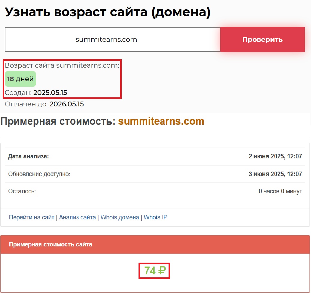 Когда мы проверили, сколько же существует этот проект, выяснилось: 18 дней. Смешно, правда? За такой срок ни один уважающий себя брокер даже не начинает серьезной деятельности. А тут — уже принимают деньги, якобы предоставляют аналитику и хвастаются некими «инструментами». Вдобавок стоимость сайта, по оценке сторонних сервисов, — всего 74 рубля. Какой еще нужен сигнал, чтобы понять — перед вами обман?