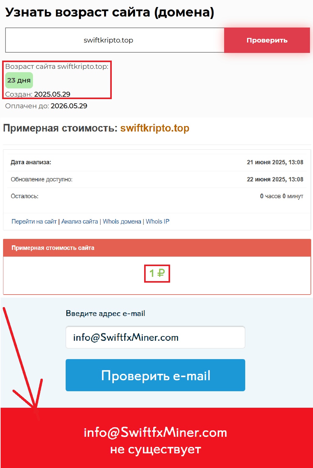 Контактная информация? Электронная почта — info@SwiftfxMiner.com и даже якобы офис где-то в Великобритании. Мы попытались проверить — увы, они нерабочие. Никаких лицензий, регистраций, реестров — ничего, что хоть как-то указывало бы на легальность деятельности этой организации. Да, снизу представлена скан-копия, но там явно виден типичный фотошоп. А это, согласитесь, главный тревожный звонок. Мы не можем назвать ни одной авторитетной юрисдикции, которая выдала бы разрешение на работу такой платформе.