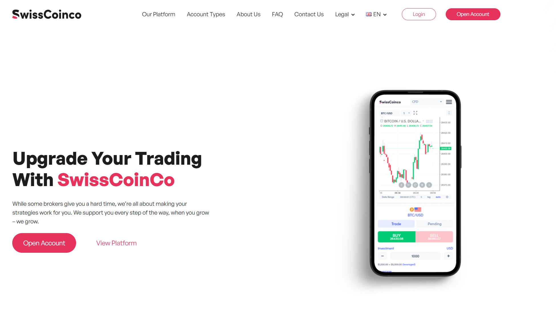 Никаких реальных доказательств своей легальности этот проект не предоставляет, зато обещания раздаются направо и налево. Давайте разберем, почему сотрудничество с этим «брокером» — не лучшая идея. Начнем с главного — с сайта, ведь именно он формирует первое впечатление. Платформа SwissCoinCo расположена по адресу swisscoinx.com, но назвать ее профессиональной язык не поворачивается. Перед нами дешево сделанный, непродуманный веб-ресурс, который не вызывает никакого доверия. Здесь можно найти массу текста о выгодах инвестирования, о низких комиссиях, об уникальных предложениях, но, по сути, это просто слова.