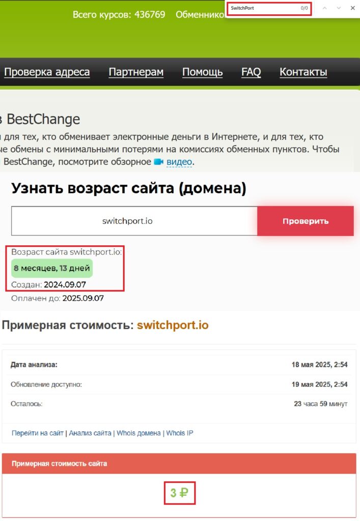 SwitchPort является ярким примером очередного недобросовестного проекта, который пытаются выдать за реальный и серьезный обменный пункт. В действительности данная платформа ничего общего с законными площадками не имеет. Она функционирует около 8 месяцев. За все это время пространство не смогло добиться доверия от экспертов и, соответственно, не попало на сайты авторитетных мониторингов.