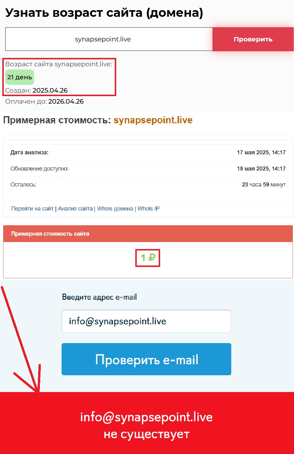 Поддержка? О, это отдельная история. Почта info@synapsepoint.live — фейковая. Ответов — ноль. И если вы вдруг столкнетесь с проблемой, то решать ее придется самостоятельно. Только вот решить ее будет уже нельзя. Деньги ушли. И вернуть их — практически невозможно. Мы искренне надеемся, что вы отнесетесь к подобным проектам с максимальной осторожностью. Не дайте себя обмануть. Не верьте ярким фразам и заманчивым баннерам. И главное — всегда проверяйте, с кем вы имеете дело. Аферисты вроде SynapsePoint только и ждут, пока кто-то расслабится и поверит в «легкие деньги».