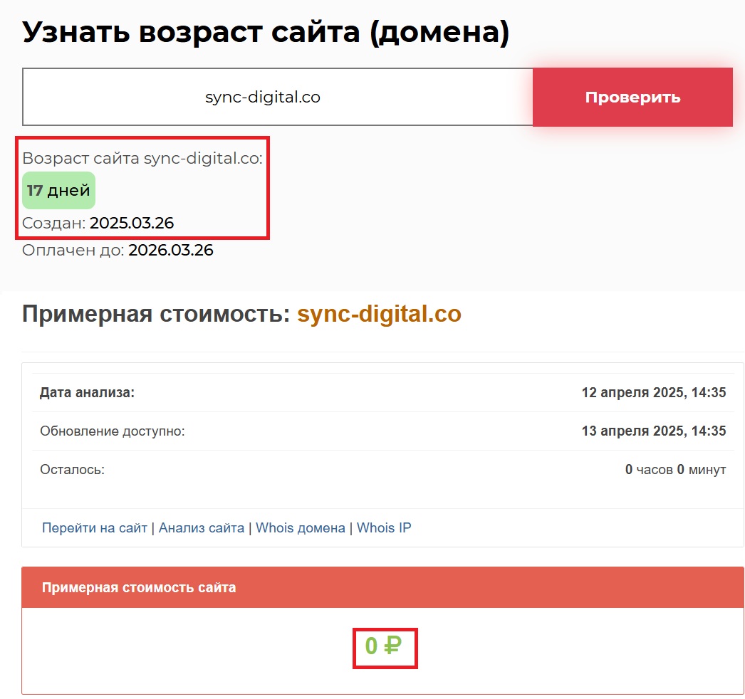 А теперь обратим внимание на стоимость проекта. Ноль рублей. Да, вы не ослышались. Именно столько стоит сайт этой «международной платформы». Как вы думаете, можно ли говорить о серьезности, если стартовая стоимость настолько мизерна? Вряд ли. Идем дальше. Нам хотят внушить, что компания работает с 2015 года. Звучит солидно, десять лет на рынке — внушает доверие, не так ли? Только вот данные говорят об обратном. Реальная активность начинается 26 марта 2025 года. Меньше месяца назад. Что ж, в очередной раз сталкиваемся с попыткой выдать желаемое за действительное.