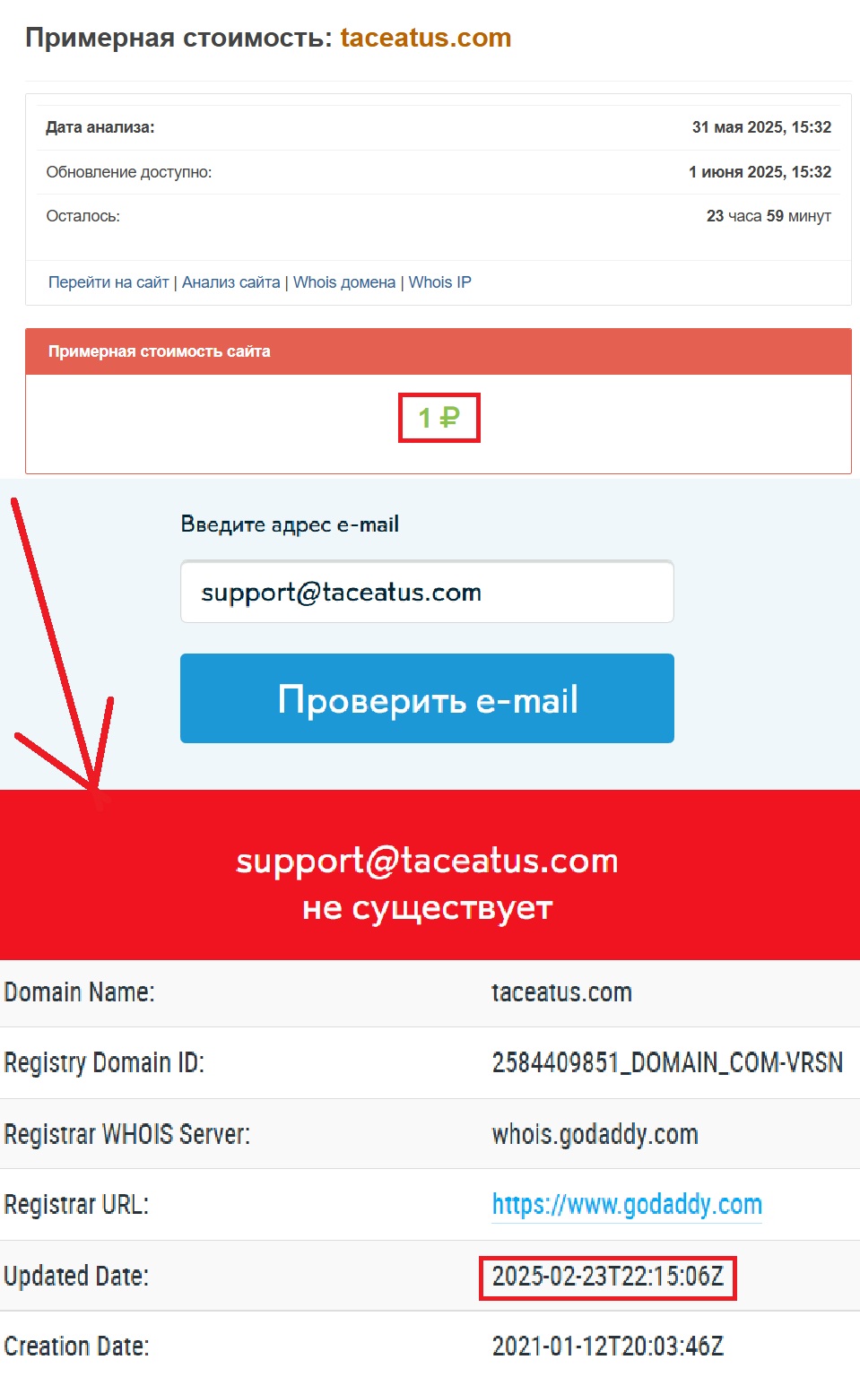 Особое внимание стоит уделить юридическим аспектам. Проект утверждает, что действует по лицензии, однако никакого номера, ни ссылки на регулятора, ни копии документа на сайте нет. А ведь, согласитесь, для брокера это основа. Без лицензии вы не имеете права принимать средства и управлять чужими финансами. Но в случае с Taceatus все это подается как-то вскользь, между строк, чтобы не привлекать лишнего внимания. Пусть сайт и зарегистрирован в интернете 12 января 2021 года, но его реальная активность началась 23 февраля 2025 года. Согласитесь, это ничтожно мало для нормальной компании.