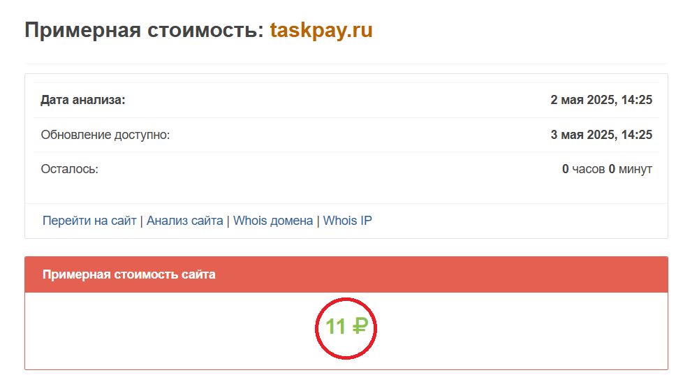 Среди них сам сайт проекта, который выглядит, мягко говоря, не очень. Его примерная стоимость составляет всего 11 рублей, что вполне заслуженно с учетом использования столь простого и не актуального дизайна.