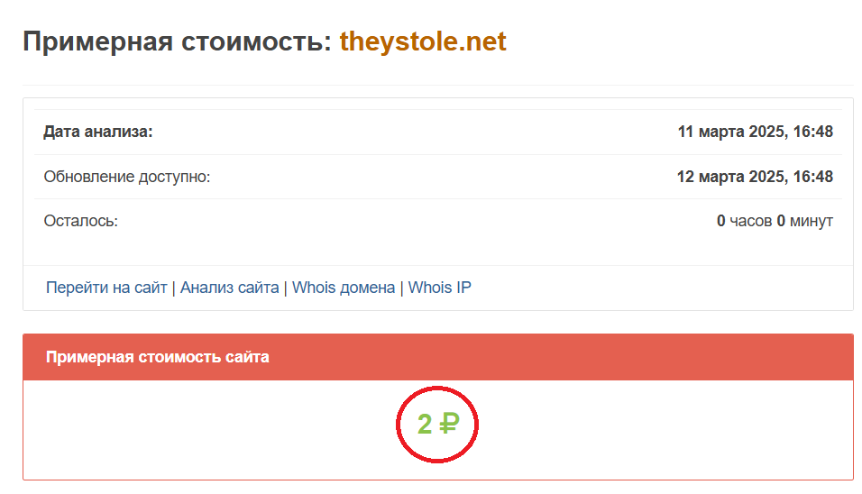 Домен TheyStole был создан всего около 5 месяцев назад, о чем свидетельствует результат проверки на специализированном сервисе. И этот результат определенно стоит принять во внимание, так как жулики, стоящие за упомянутой конторой заявляют о куда большем опыте работы. Вот только с учетом возраста сайта можем смело сделать вывод о том, что представители TheyStole нагло врут.