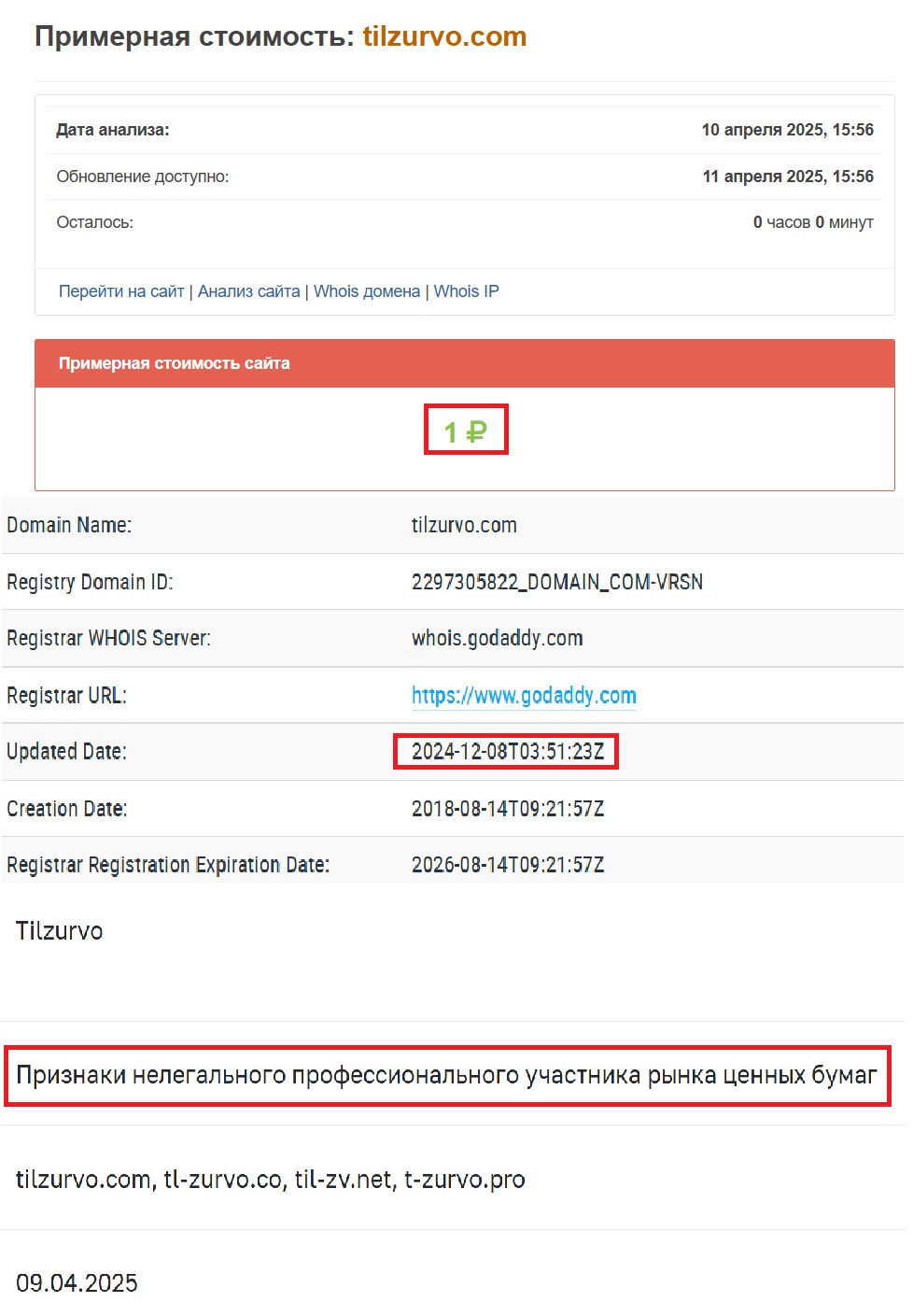 Да, формально домен зарегистрирован еще в 2018 году. На первый взгляд — серьезный срок. Но если копнуть, то выясняется: сайт сменил владельца декабря 2024 года. То есть весь этот «опыт» и «стаж работы» — такая же сказка, как и все остальное. Просто красиво поданная. А за красивыми словами, как правило, ничего нет. Более того, вы не поверите, сколько стоит эта площадка. Один рубль. Не образно, не условно — ровно один. Это даже не вызывает недоумения, скорее грустную улыбку. Согласитесь, трудно представить себе команду профессиональных аналитиков, которая будет работать на ресурсе с подобной стоимостью.