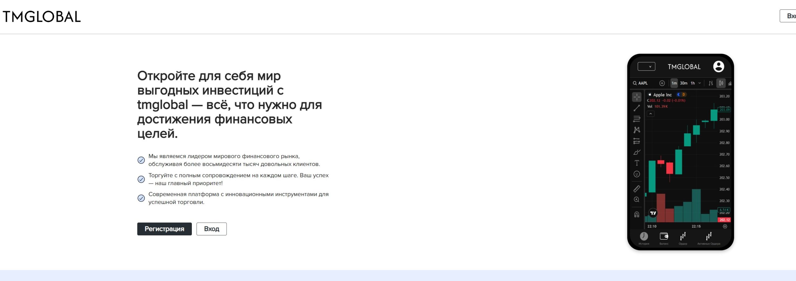В последнее время мы замечаем тревожную тенденцию: на просторах интернета все чаще появляются красивые обещания легкой прибыли без усилий. Вот, например, Tmglobal — очередной проект, который уверяет, что вам не потребуется ни читать книги по инвестированию, ни смотреть обучающие ролики. Просто пополняете счет и «настоящие эксперты международного рынка» все сделают за вас. Звучит заманчиво, да? Но стоит ли вообще верить таким громким заявлениям — вопрос, который стоит задать себе до того, как вы даже подумаете отправить туда свои деньги.