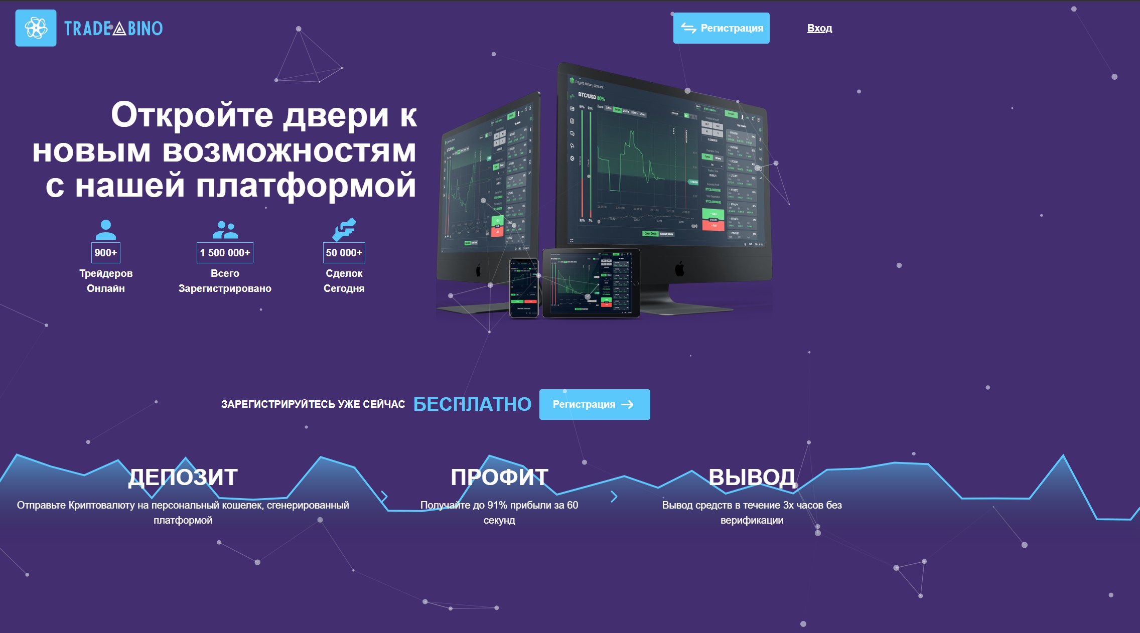 Вы можете зайти на сайт tradebino.com, взглянуть на интерфейс — и, быть может, на первый взгляд он даже покажется «похожим на нормальный». Но не обманывайтесь. Мы изучили этот ресурс более внимательно, и сразу стало понятно: перед нами не брокер, а очередной псевдоинвестиционный проект. Мошеннический, если говорить прямо. Площадка построена по классической схеме: взяли дешевый шаблон, добавили немного текста, вставили пару картинок и… пожалуйста — “инвестиционная компания”. Только вот ничего стоящего за этим фасадом нет. Совсем.