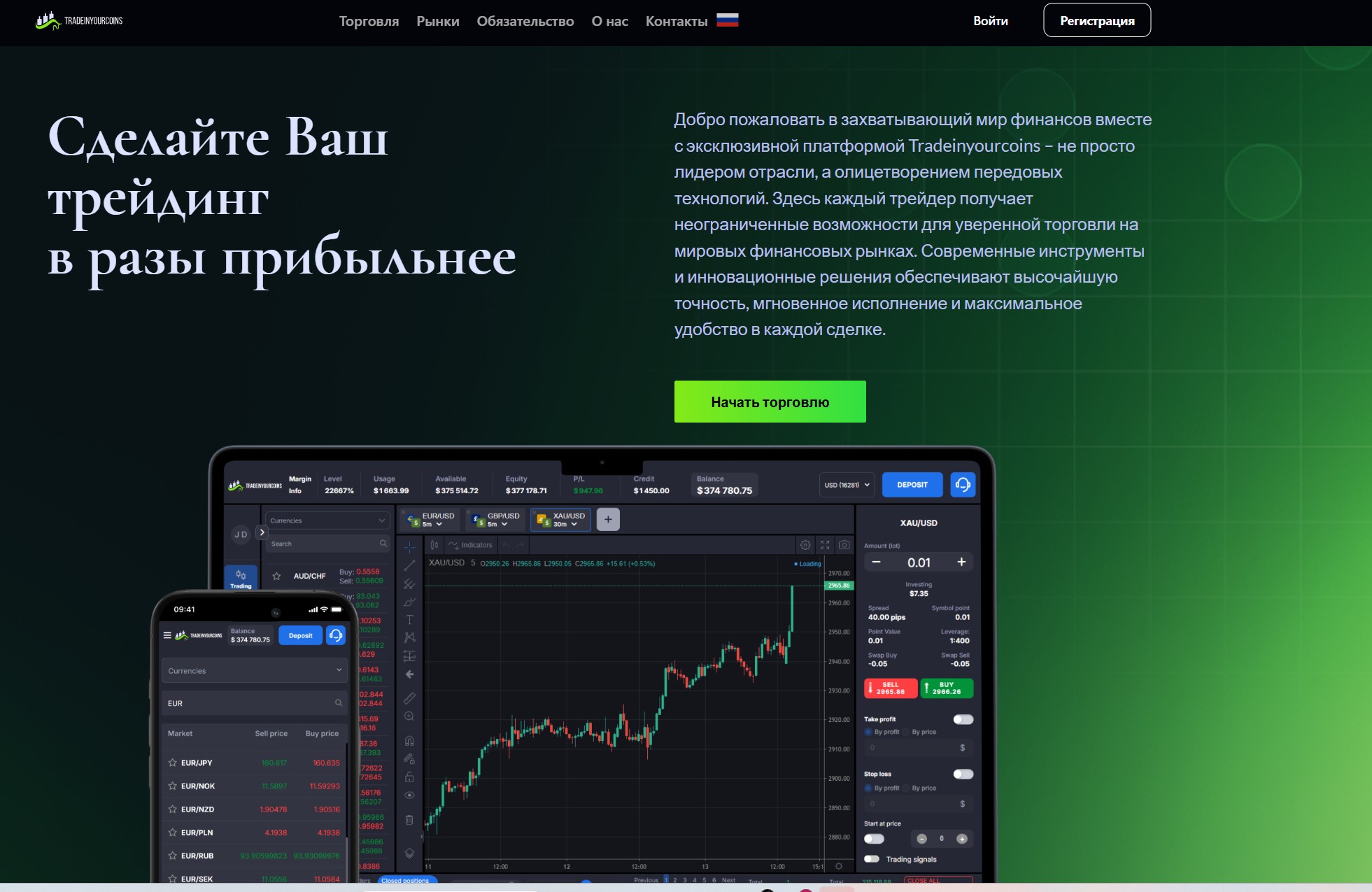 Вы когда-нибудь слышали историю о том, как за один вечер можно разбогатеть благодаря «опыту международных специалистов», «инновационным торговым инструментам» и «проверенным стратегиям»? Ну конечно слышали. Мошенники ведь любят рассказывать именно такие сказки. А если вы еще не слышали, то проект под названием Tradeinyourcoins обязательно вам эту «легенду» поведает. Проблема только в одном — это не история успеха. Это очередная ловушка.