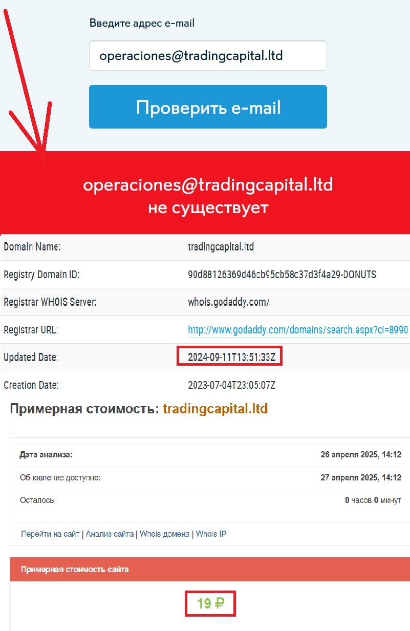 Сайт Trading Capital зарегистрирован совсем недавно — 11 сентября 2024 года. Прошло всего пару месяцев. Серьезная компания с таким «опытом»? Смешно. К тому же стоимость сайта — всего 19 рублей. Да-да, за такую сумму вы бы и гамбургер не купили, а тут целая «финансовая платформа». Звучит абсурдно, не правда ли?