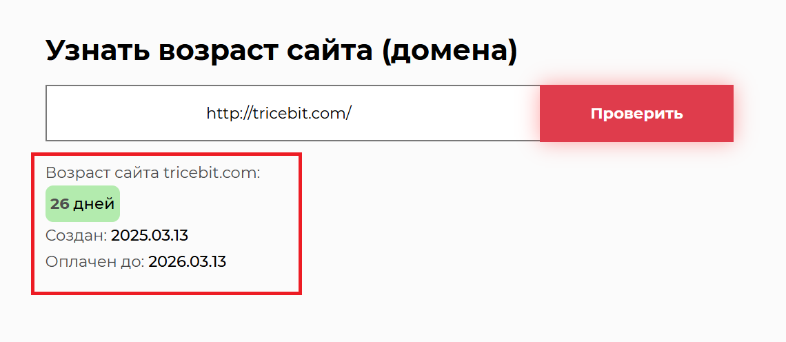 Что же указывает на недобросовестный характер платформы? Предлагаем начать обсуждение с анализа сайта. После проверки на специализированном сервисе удается узнать, что контора была создана меньше месяца назад. При столь малом возрасте домена аферисты не стесняются называть свое творение серьезным, надежным и безопасным.