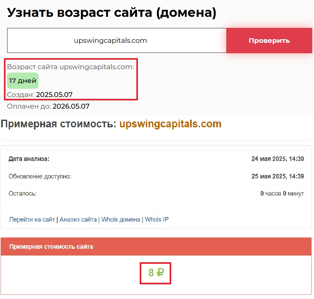 Мы провели собственную проверку. Использовали стандартные сервисы — Seolik, Whois и пару других. Все предельно ясно: проект появился в сети 17 дней назад, то есть 7 мая 2025 года. Смешно. Настоящие брокеры годами формируют репутацию, инвестируют в безопасность, заключают контракты с поставщиками ликвидности, получают лицензии. А здесь — меньше месяца и полная анонимность. Вам этого достаточно, чтобы доверить свои средства?