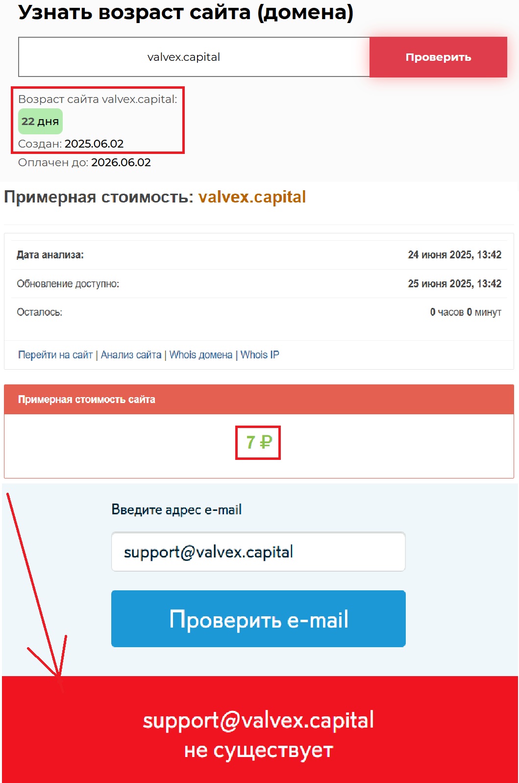 Теперь внимание: домен был зарегистрирован всего 22 дня назад, то есть 2 июня 2025 года, что крайне мало для нормальной компании. Эта афера не имеет ничего общего с нормальными брокерами, которые заслуживают репутацию годами.
