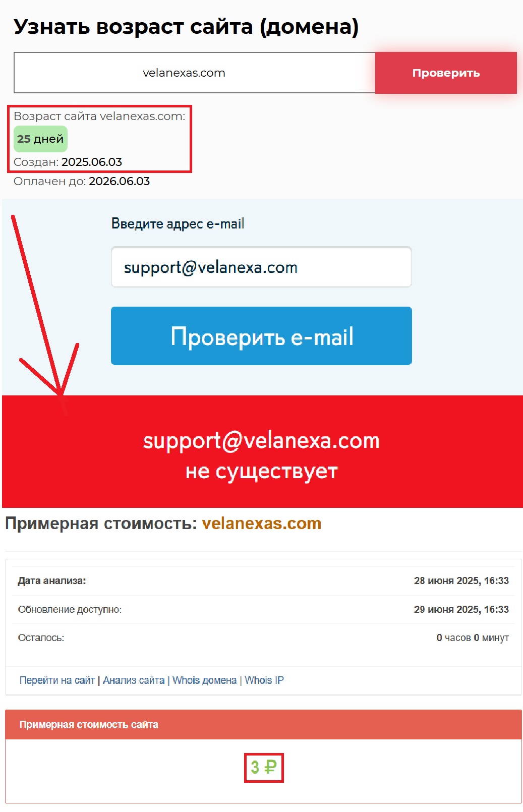 Кстати, сам сайт стоит жалкие три рубля. Это серьезный звоночек. Как только начинается поток жалоб и негативных отзывов, мошенники предпочитают не разруливать ситуацию, а просто сбегают. Отключают старый сайт, покупают новый домен — и все начинается сначала. Почему бы и нет, если схема продолжает приносить им деньги?