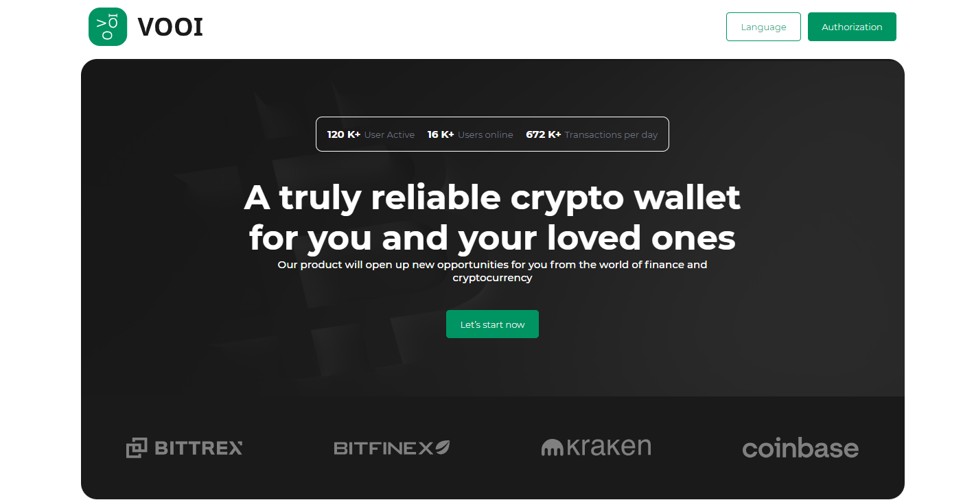 Проект под названием Vooi представляют аудитории как инновационный криптовалютный кошелек, с которым можно удобно и надежно хранить, обменивать валюту, а также инвестировать в цифровые активы. Разработчики рассказывают о своем творении, как об идеальной платформе для новичков опытных пользователей. В описании конторы идется о высоком уровне конфиденциальности, поддержке многих криптовалют и об использовании искусственного интеллекта с целью повышения безопасности и комфорта применения ресурса.