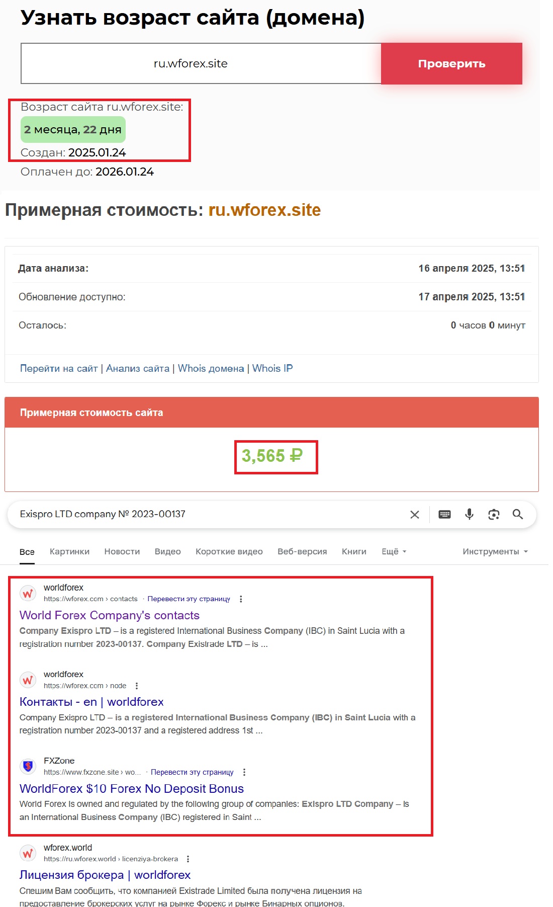 Нам кажется важным отдельно остановиться на юридических нюансах. Ведь наличие лицензии, регистрационных данных — это не просто бюрократия. Это ваш щит. Это то, что может хотя бы формально защитить ваши деньги. А что в случае с World Forex? Ничего. Ни одного документа, никакой официальной регистрации. Просто пустое пространство, где должна быть хотя бы видимость законности. Мол, пользуйтесь сайтом, а в случае чего — ищите крайнего. Мы проверили указанный на сайте номер документа Exispro LTD сompany № 2023-00137 и не нашли ни одного упоминания у каких-либо регуляторов.