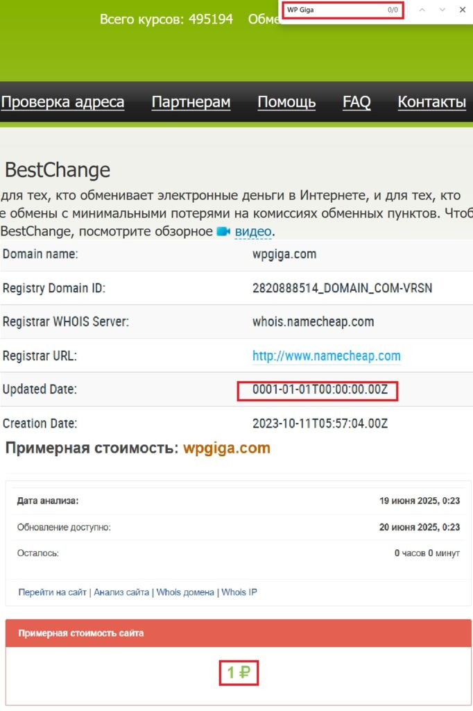 Домен фейкового обменного пункта, как выясняется, был зарегистрирован еще в октябре 2023 года. Но после этой даты произошло обновление, а жулики тщательно скрыли сведения о сайте. Подмена истории и попытки выдать себя за что-то старое и якобы проверенное считается одним из приемов многих злоумышленников. Они намеренно лгут о своем возрасте (покупая зачастую давно созданные ресурсы), чтобы повышать доверие со стороны клиентов (ведь больший опыт — больше шансов на успех и честность).