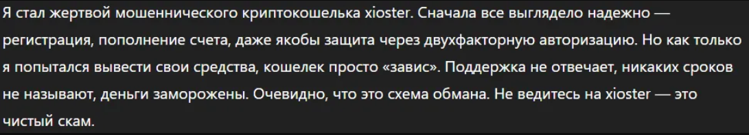 Xioster продвигается в сети через заказные комментарии и отзывы. Все они кажутся шаблонными и выглядят так, будто бы были написаны «ботами» либо людьми за оплату.