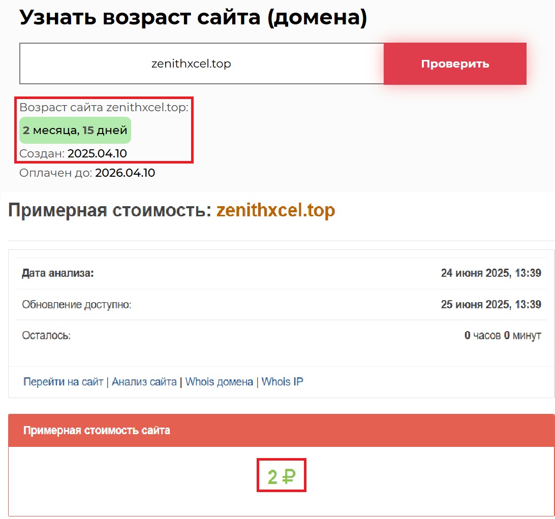 Что касается возраста проекта — тут тоже все предсказуемо. По данным Whois, сайт появился 10 апреля 2025 года. Чуть больше двух месяцев назад. А теперь давайте зададим себе честный вопрос: разве за такой короткий срок можно сформировать квалифицированную команду, наладить международные связи, выстроить процессы и доказать эффективность своих стратегий? Очевидно, что нет. Но ZenithXcel LTD старается убедить нас в обратном, не предоставляя ни одного реального доказательства своих громких заявлений.