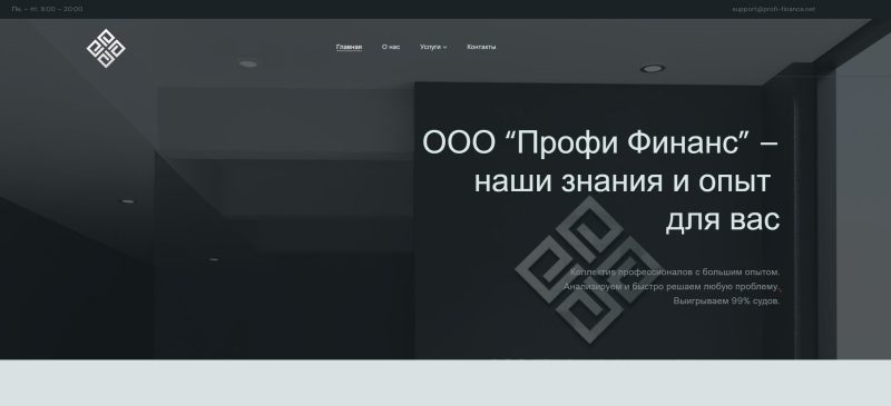 Как только клиент соглашается, появляются какие-то «сборы», комиссии, дополнительные платежи, которые, разумеется, нужно внести заранее. А потом — тишина. Веб-ресурс profi-finance.net — типичная шаблонная контора. Если не вдаваться в детали, может показаться, что все выглядит серьезно: строгий дизайн, юридические термины, внушительные цифры о количестве выигранных дел. Но если посмотреть внимательнее, то сразу становится ясно, что перед нами примитивная подделка. Аферисты просто взяли стандартный шаблон, поменяли логотип, написали «историю компании» и начали активно продвигать проект в сети.
